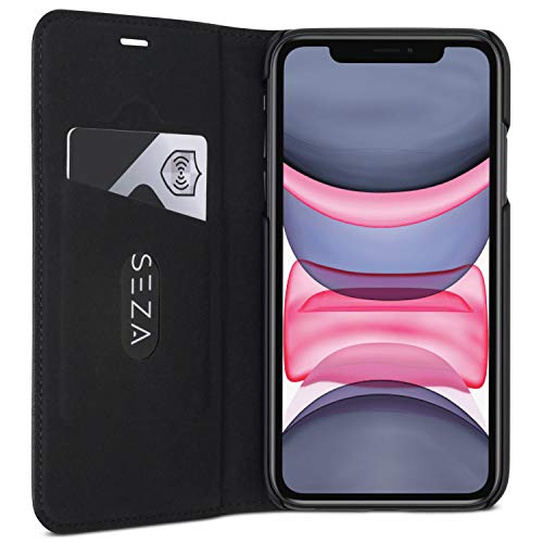 CASEZA Cover iPhone 11 Nero Similpelle a Libro Oslo Custodia Eccellente in Pelle Sintetica a Portafoglio per iPhone 11 (6.1") Originale - Ultra Sottile con Chiusura Magnetica