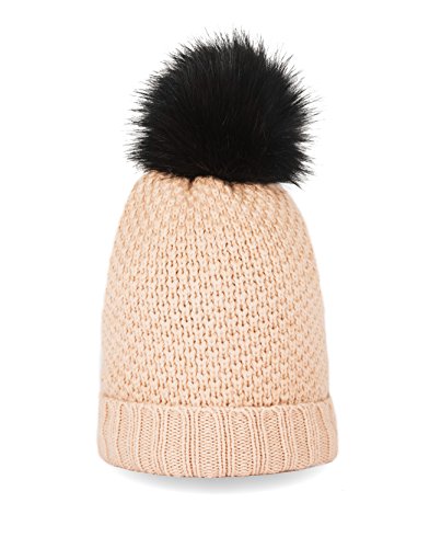 CASH-MERE.CH Berretto | Beanie Invernale con PON PON di Pelliccia Sintetica Particolare in Cachemire al 100% (Beige/Camel, Taglia Unica)