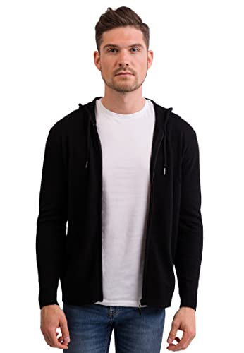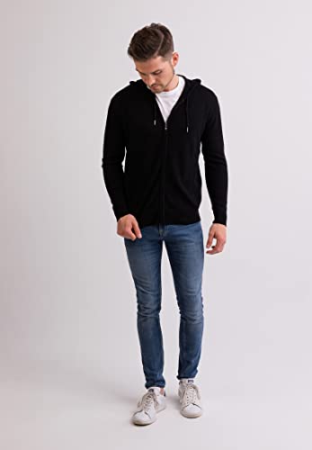 CASH-MERE.CH Pullover | Felpa con Cappuccio con Cerniera da Uomo 100% Cachemire (Nero, XL)