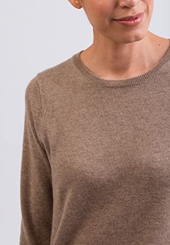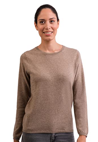 CASH-MERE.CH Bio Pullover | Sweater | Maglione a Girocollo da Donna 100% Cachemire (Marrone/Taupe Chiaro, S)