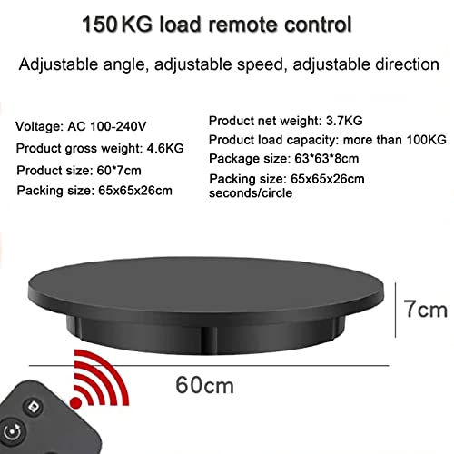 Cashwise Espositore Girevole motorizzato, Base Girevole elettrica, 150 kg/330 libbre di carico centrico per Gioielli, espositore da Collezione,Black-60cm
