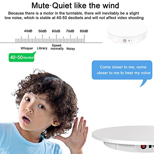 【Rotazione silenziosa e fluida】: espositore ci sono 6 cuscinetti antiscivolo nella parte inferiore, progettati con cuscinetti antiscivolo di sicurezza, che non si agitano durante la visualizzazione di prodotti pesanti, la velocità può essere regolata in base alle diverse esigenze e la velocità del telecomando è di 40-120 secondi/40-120 secondi. Test professionale di decibel dei bassi, riduzione del rumore, buoni risultati, non influirà sulle riprese video.