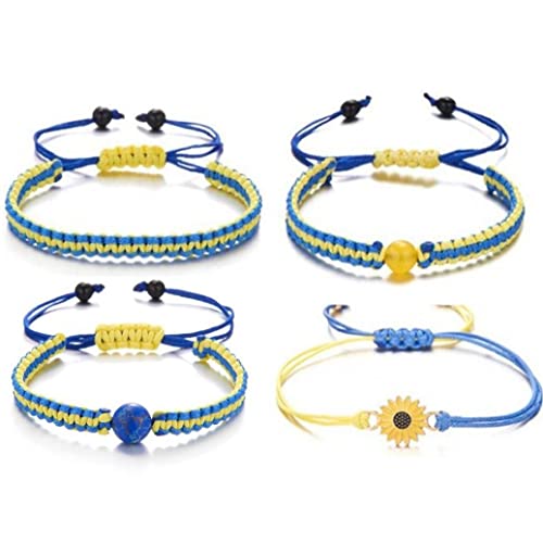 Casiler 4 Pezzi Di Girasole Pace Ucraina Braccialetto Giallo Perline Giallo in Tessuto Bracciale Unisex Souvenir Regalo
