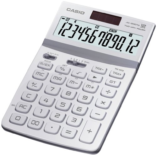 Casio JW-200TW-WE Calcolatrice da Tavolo, Display a 12 Cifre, Struttura in Metallo, Bianco