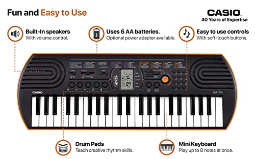 Casio SA-76 Mini Tastiera polifonica a 8 Voci e 44 tasti, Nero/Arancio