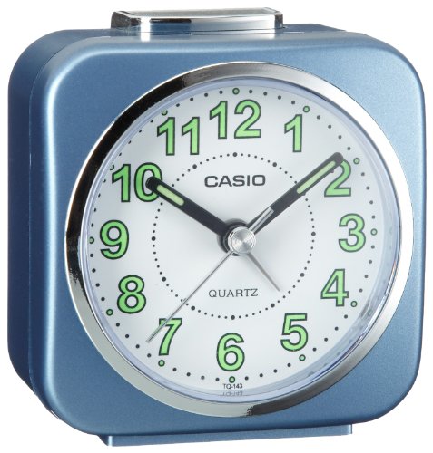 Casio TQ143-2 Alarm Clock with Light and Snooze, Blue