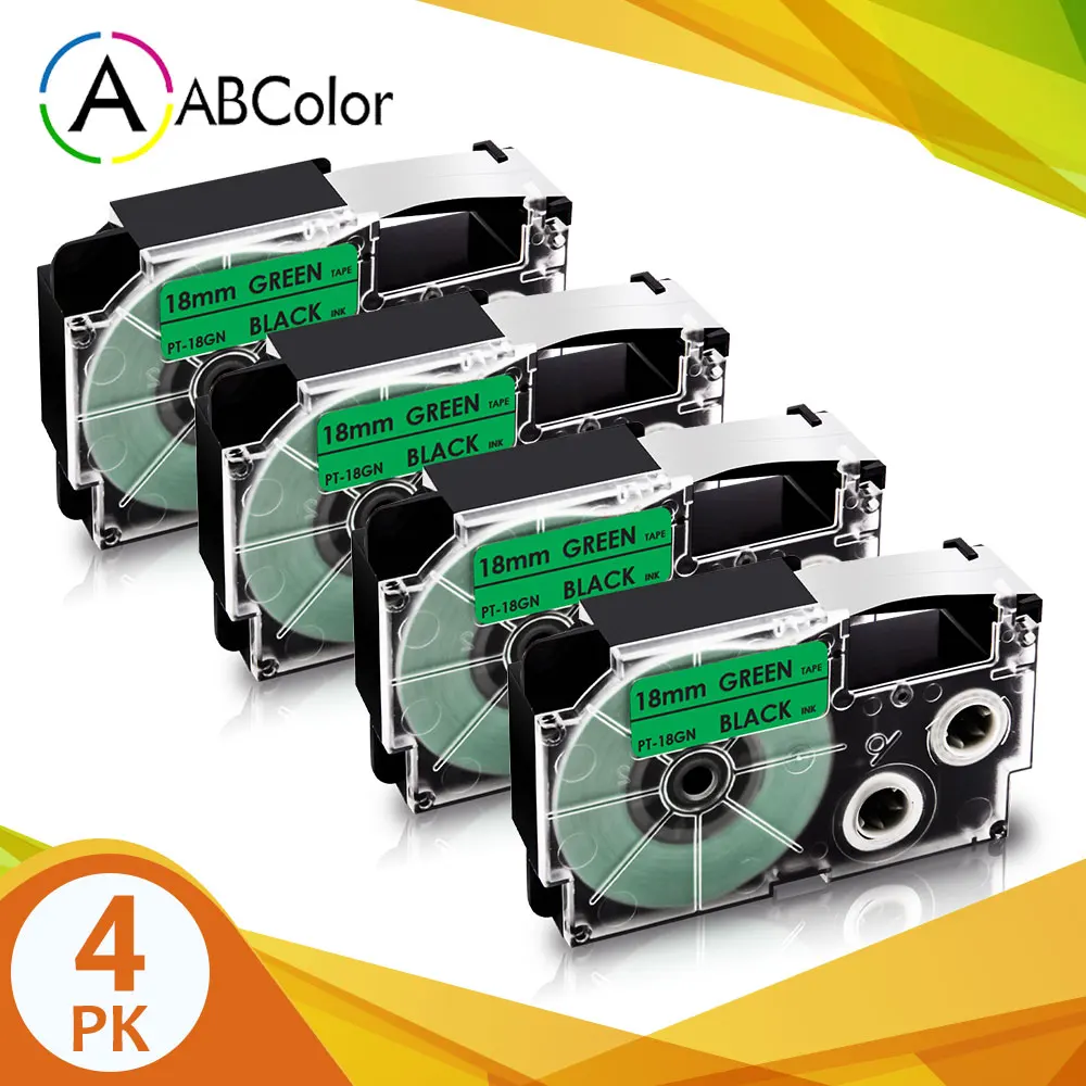 4Pcs XR 18GN Tape for CASIO XR-18GN 18mm Label Tape Black on Green XR-18GN Labels Cartridge For CASIO KL-300 KL-750 Label Maker