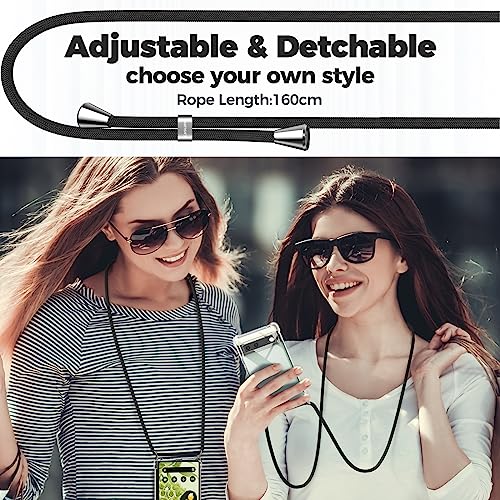 Caslod Custodia con Cordino Google Pixel 6'' Custodia Trasparente con Collana Tracolla Laccio Collo Ultra Sottile Morbido TPU Silicone Antiurto AntiGraffio Case, Nero