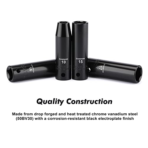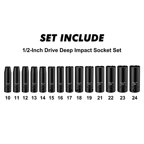 CASOMAN 1/2-Inch Drive Deep Impact Socket Set, Metric, Cr-V, 6-Point, 10 mm - 24 mm, 14-Sockets Set