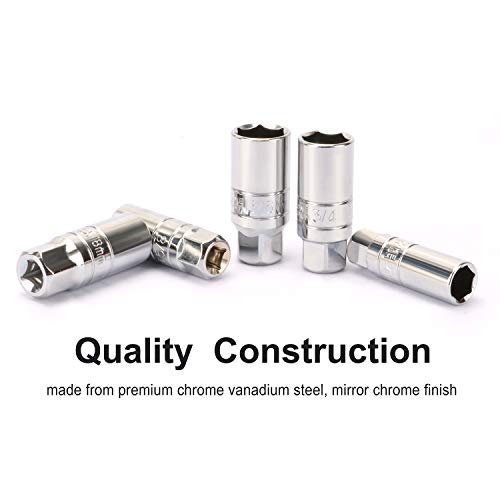 CASOMAN 3/8-Inch Drive Spark Plug Socket Set, 6-Point, Thin-wall, 5/8-Inch, 3/4-Inch, 13/16-Inch, 14mm, 18mm, 5-Piece Set