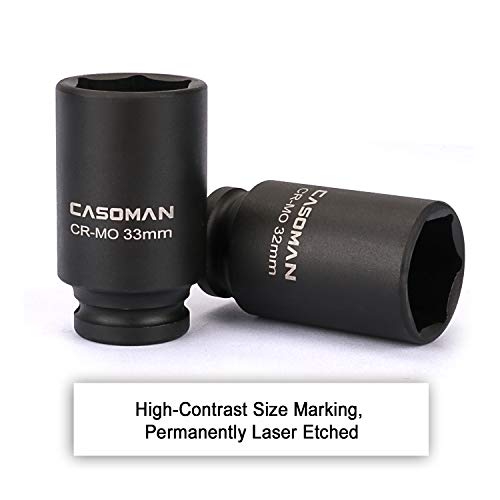 CASOMAN 1/2'' Drive Deep Spindle Axle Nut Impact Socket Set, 6 Point, CR-MO,32,33,35,36mm, 4PC 1/2-Inch Impact Socket Set, Heavy Duty Use In Removing And Installing Axle Nuts