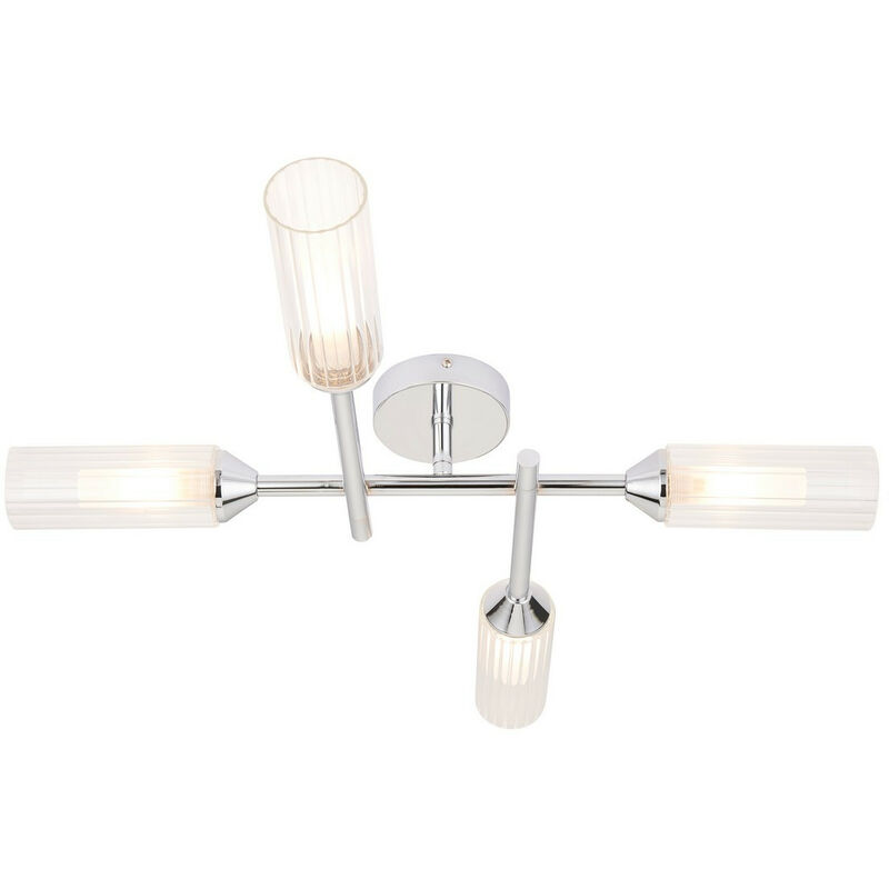 Merano Casoria Lampada da soffitto semi-incasso in vetro multi braccio per bagno, piastra cromata, vetro rigato, IP44 | Finitura: cromo, vetro rigato | Materiale: acciaio, vetro | Classificazione IP: IP44 | Proiezione: 12 cm | Diametro: 60 cm | Tipo di lampada: G9 | N. di lampade: 4 | Lampadina inclusa: No | Dimmerabile: Sì - Lampadina dimmerabile richiesta | Peso: 1,36 | Potenza (max): 3W LED