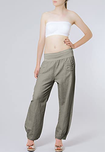 Caspar KHS006 Pantaloni di lino da donna Taupe Large