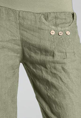 Caspar KHS017 Donna Pantaloni Capri di Lino, Colore:Verde Oliva, Dimensioni:M - DE38 UK10 IT42 US8