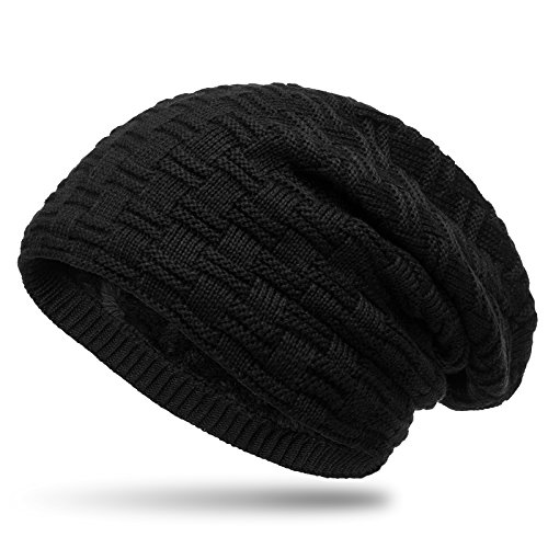 Caspar MU133 Berretto Beanie a Maglia Unisex Foderato in Pile, Colore:nero, Dimensioni:Taglia unica