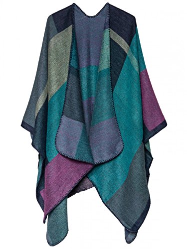 Caspar PON006 Donna Poncho A Quadri Multicolore