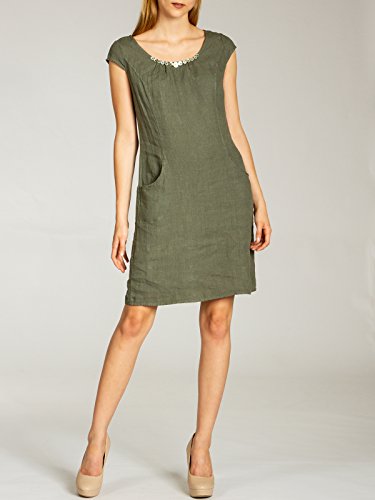 Caspar SKL018 Donna Vestito Estivo di Lino con Bottoni Decorativi