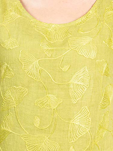 Caspar SKL031 Vestito Donna Estivo di Lino Fino al Ginocchio con Stampa di Ginko, Colore:Verde Chiaro, Dimensioni:XL - DE42 UK14 IT46 US12