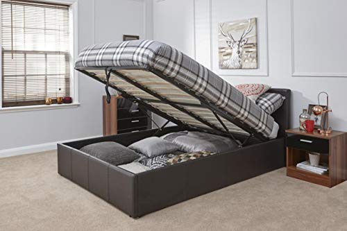 Caspian Ottoman Gas Lift Up Storage Bed - Brown 4ft6 Double by Right Deals UK