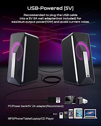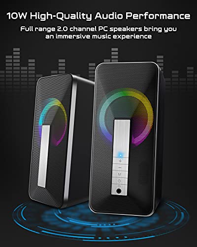 ♬【Alta fedeltà del suono:】Gli altoparlanti potenti 5W + 5W HD con suono chiaro e limpido e bassi potenti senza distorsione persino al massimo volume che si offre un'esperienza sonora stereo più piacevole, trasforma il tuo computer desktop o portatile nel sistema audio sia per l'uso interno sia per l'uso all'aperto usano.