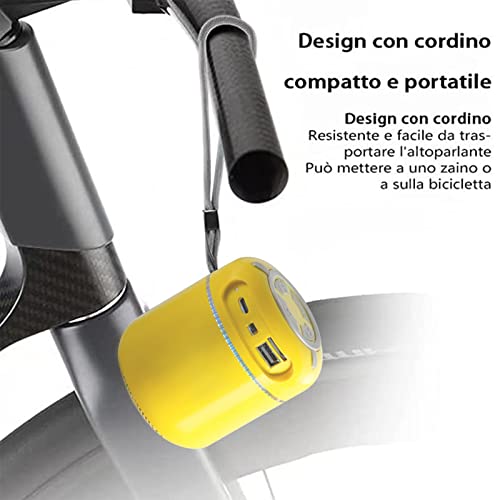 M MU Cassa Bluetooth Portatile, Speaker Bluetooth Portatile, Luce LED, Cassa Altoparlante Wireless con Design Compatto, Resistente ad Acqua e Polvere IP62, fino a 3 h di Autonomia, USB, Giallo