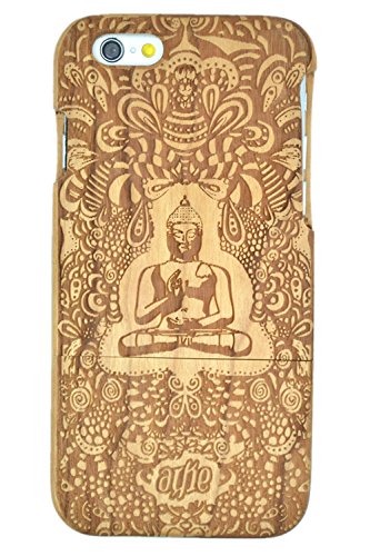 Cassa di Legno di iPhone 6S (4.7 inch), PhantomSky[Serie di Lusso] Qualit à Premium Cover in Bambù / Legno Naturale con Gratis Paraschiena Schermo per il tuo Smartphone - Buddha Indiano Legno Ciliegio(Cherry Wood Indian Buddha)