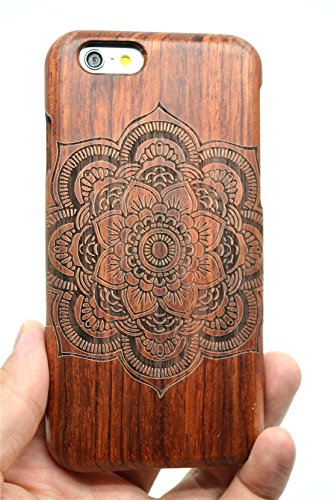 Cassa di Legno di iPhone 6S (4.7 inch), PhantomSky[Serie di Lusso] Qualit à Premium Cover in Bambù / Legno Naturale con Gratis Paraschiena Schermo per il tuo Smartphone - Mandala Palissandro(Rose Wood Mandala)