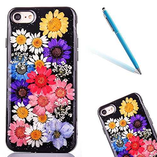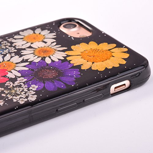 Cassa in Molle Rubber per Apple iPhone 7 4.7"(NON iPhone 7Plus 5.5"), CLTPY Black Handmade Naturale Flower Essiccate Fiore Case Protettiva Ultra Sottile Morbido e Flessibile in TPU Silicone Cover-di Ritegno Hull per iPhone 7 + 1x Stilo - Fiore 10
