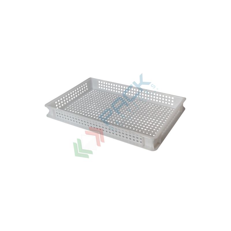 CASSETTA SOVRAPPONIBILE IN PLASTICA (HDPE), IDEALE PER ALIMENTI Contenitore sovrapponibile in plastica, capacità 13 Lt, Mis. esterna 600 L x 400 P x 70 H mm, Mis. interna 565 L x 365 P x 67 H mm, con fondo e pareti forate. Cassetta in plastica realizzata in polietilene alta densità (HDPE), ideale per il trasporto e contenimento di alimenti. Scatola in plastica impilabile con maniglie chiuse che trova largo uso nelle aziende alimentari, panetterie, pasticcerie ecc... Colore bianco. Caratteristiche tecniche: Capacità 13 Litri Dimensioni interne: 565 L x 365 P x 67 H mm Dimensioni esterne: 600 L x 400 P x 70 H mm Colore: Bianco Maniglie: Chiuse Fondo: Forato Pareti: Forate Sovrapponibile ed impilabile Dettagli Prodotto: Materiale: polietilene alta densità neutro, densità 0,941-0,960;
