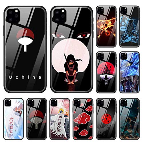 Cassa Del Telefono In Vetro Temperato per iPhone 11 11Pro 11 Pro Max 6 6S 7 8 Plus X XR Xs Max Anime Kakashi Itachi Akatsuki Stampa Telaio In Silicone Posteriore Cover Coque (13, iPhone X XS)