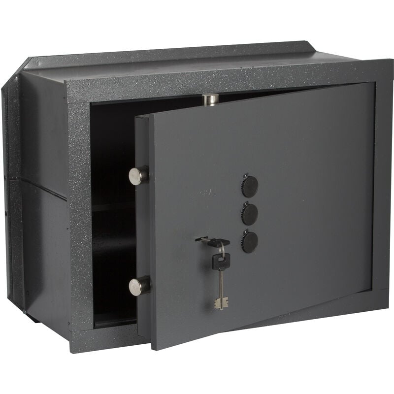 Cisa cassaforte da muro art. 82210 chiusura con chiave+combinatore mm. 490x250x360 h In acciaio verniciato, serratura con protezione antitrapano. Combinatore a 3 pomoli di semplice utilizzo, 32.000 combinazioni possibili, che agisce come blocco della serratura a chiave doppia mappa. Porta con parete anteriore da mm. 10, catenacci � mm. 22. Articolo produttore: 182210510