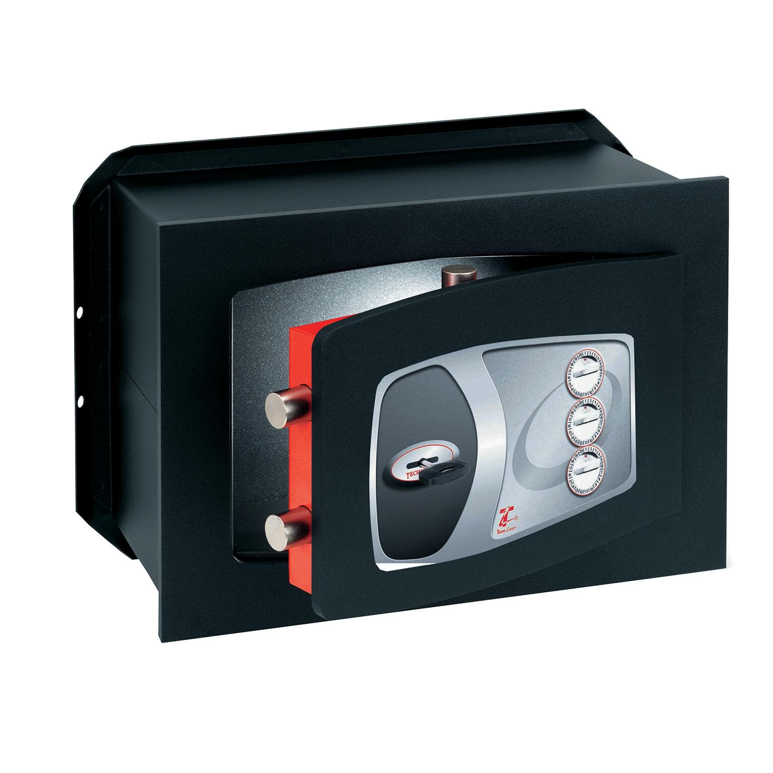 Cassaforte a muro, 4 chiavistelli Ø 22 mm girevoli. Adatta per contenere importanti documenti in formato A4. Sportello di elevato spessore per garantire un'alta protezione contro lo sfondamento. I catenacci girevoli impediscono alle lame di fare presa e quindi di essere tagliati. Antiforzatura, il taglio al laser dello sportello e della cornice garantisce un accoppiamento sottilissimo che impedisce l'apertura tramite leve