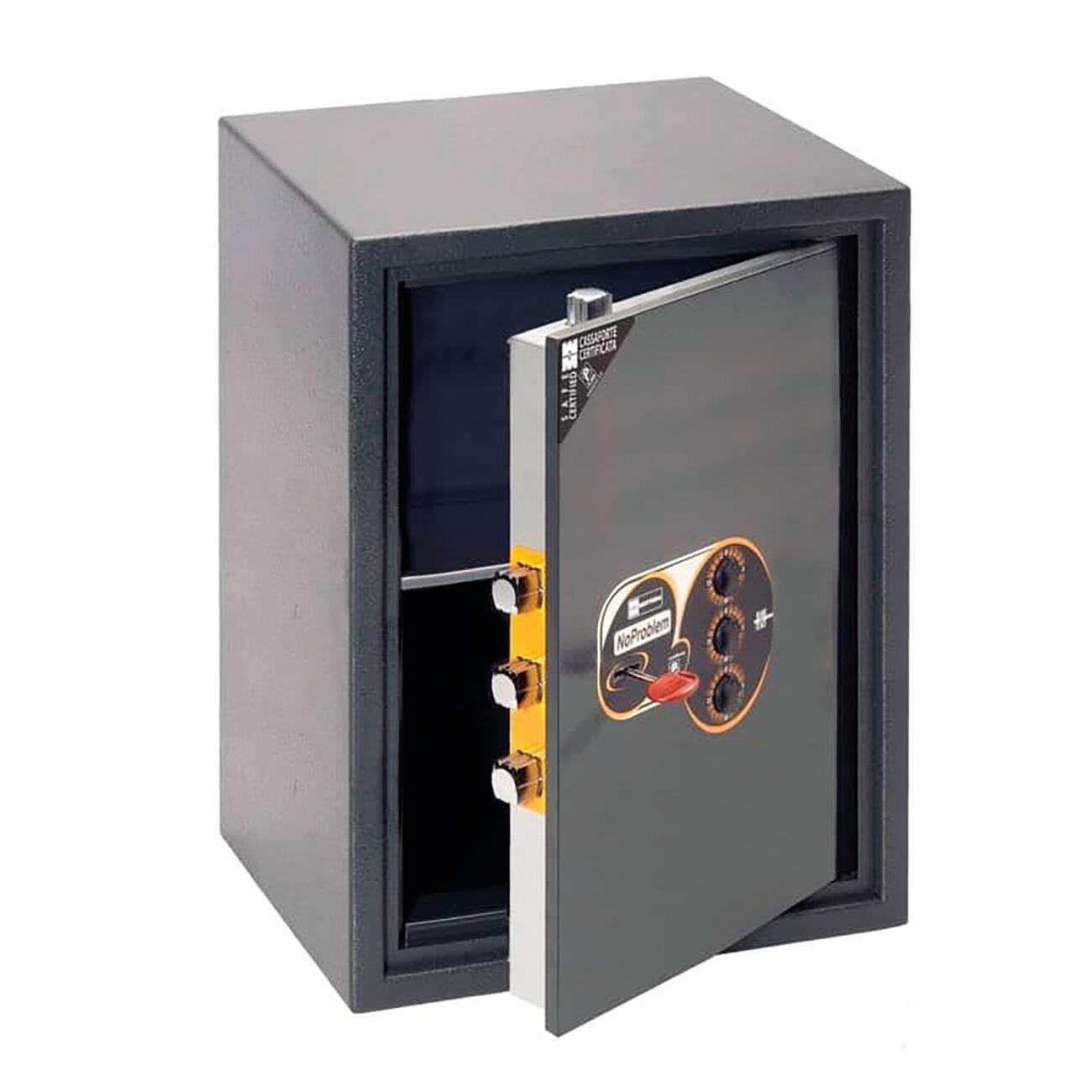 Cassaforte mobile, 6 chiavistelli 10 mm. Adatta a nascondere beni preziosi di dimensioni contenute. Adatta sia per un uso professionale sia casalingo. ridotte dimensioni. chiavistelli sagomati protetti al maganese. avvolta da triplo strato di acciaio