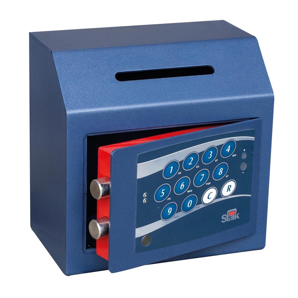 Cassaforte a mobile per contante, 2 chiavistelli girevoli 18 mm. Per contante e documenti. Con apertura ritarda programmabile fino a 20 minuti.. Sistema anti ripescaggio posto nella fessura. Alimentazone esterna in emergenza