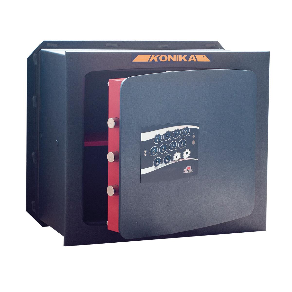 Cassaforte a muro, 5 chiavistelli girevoli 22 mm. Ideale per casa e ufficio. Contatto esterno direttamente su tastiera per apertura in emergenza. Taglio laser 3D anti sfondamento