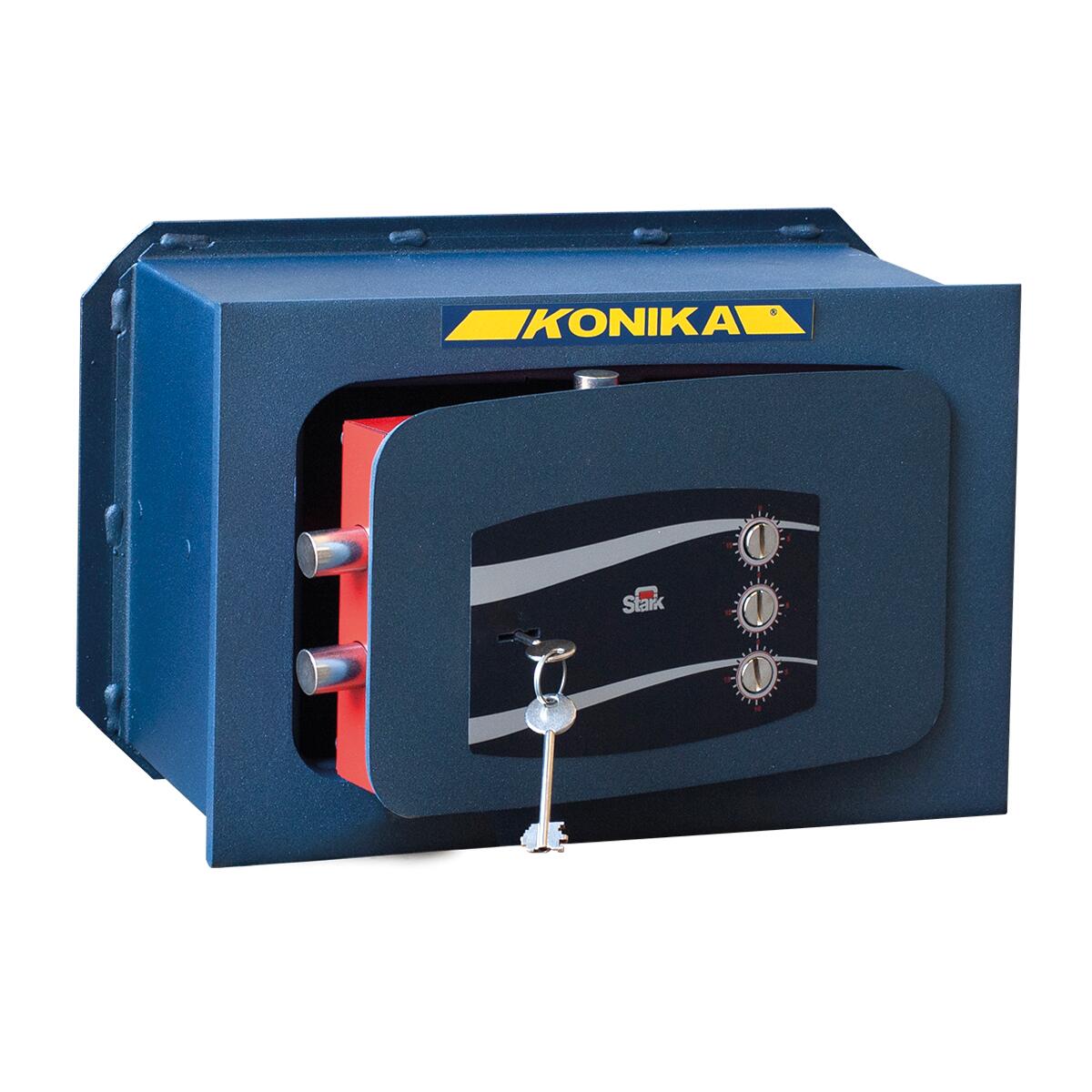 Cassaforte a muro taglio koniko 3d anti sfondamento con serratura a chiave doppia mappa a due mandate con traino diretto dei catenacci e combinatore a 3 quadranti . estrazione inibita della chiave a porta aperta.. cassaforte a muro con chiave doppia mappa e combinazione a 3 quadranti di facile utilizzo per la custodia dei beni in casa e uffici.