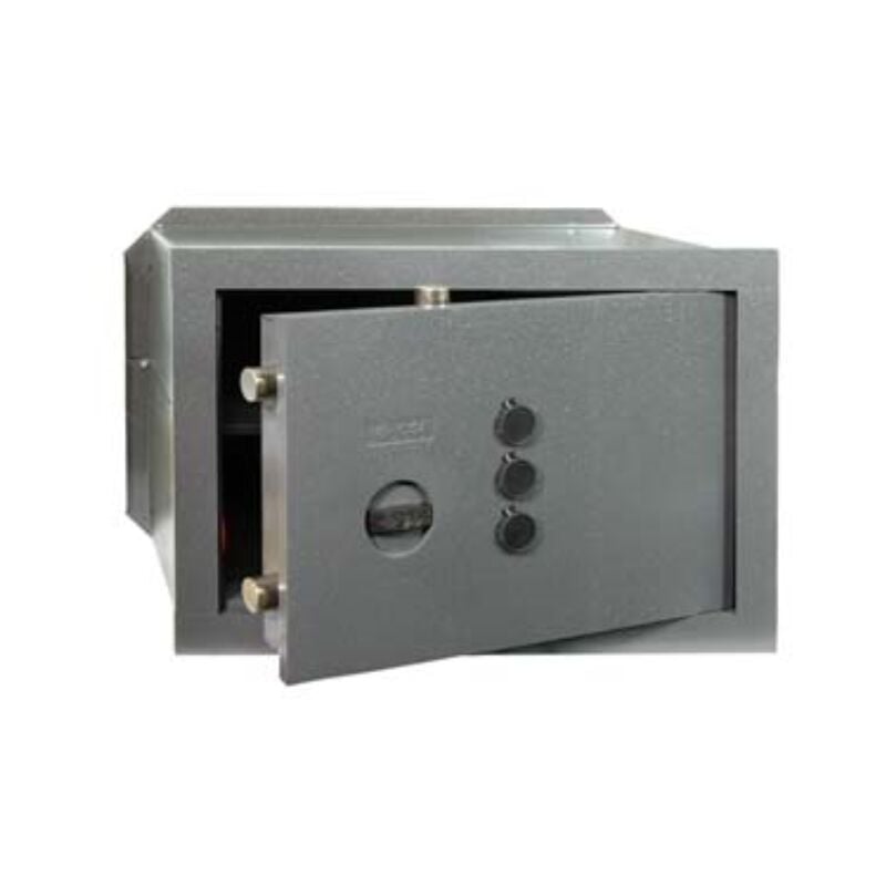 Mm.360x200x240h. peso kg.18,4 (82410-31) frontale in acciaio da mm.10 di spessore, catenacci in acciaio nichelato ø mm.22, serratura e meccanismi fissati direttamente sullo sportello con piastra di protezione della serratura in acciaio carbonitrurato, versione solo combinatore a 3 pomoli, verniciatura a forno ad alta resistenza contro la corrosione, dotazione 1 ripiano interno Categoria merceologica: Casseforti, armadi blindati, cassette portavalori - Sicurezza - Casseforti