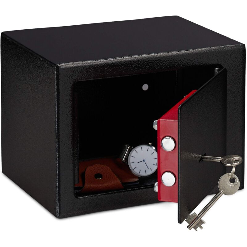 La cassaforte mobile compatta è l'ideale per tenere al sicuro i vostri oggetti più preziosi, come passaporto, soldi o gioielli, sia in ufficio ma soprattutto in casa. La cassetta è realizzata in acciaio massiccio e può essere inserita negli angoli più angusti, nicchie oppure nell'armadio o nel comò. Inoltre potete anche fissarla con le viti al muro o al pavimento grazie ai 2 fori presenti nella parte posteriore e inferiore della cassaforte mobile. 2 viti massicce sono presenti nella confezione.Attezione: fissate la cassetta alla parete, in modo da non farla cadere in avanti quando aperta e garantire la massima stabilità della cassetta.Cassaforte mobile in dettaglio- Dimensioni esterne H x L x P: 17 x 23 x 17 cm ca.- Dimensioni interne H x L x P: 16 x 22 x 16 cm ca.- Spessore della porta: 3 cm ca.- Dimensioni apertura L x P: 16 x 12,5 cm ca.Cassetta di sicurezza per la casa- Materiali: acciaio, feltro- Peso: 2,8 kg ca.- Disponibili in diversi coloriCassaforte mobile per proteggere gli
