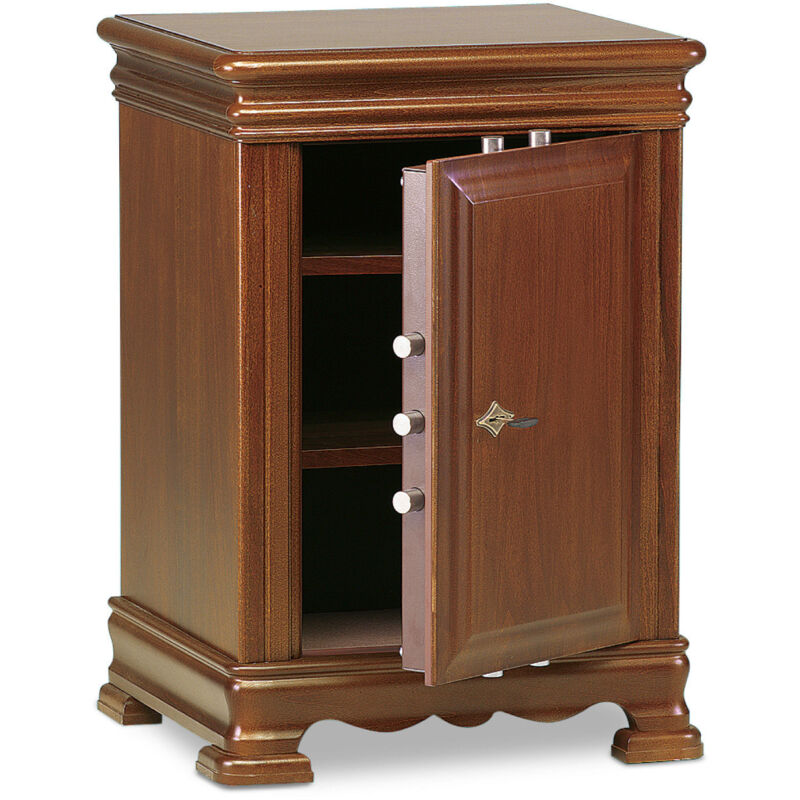La linea Evolution si inserisce in qualunque contesto di arredamento, grazie al calore del legno che coniuga l'eleganza con la sicurezza dei prodotti Technomax. CARATTERISTICHE TECNICHE - La cassaforte presenta una serratura (certificata UNI EN 1300) di ultima generazione, quindi di alta sicurezza con 8 leve asimmetriche ed indipendenti. La sua eccezionale resistenza agli attacchi con gli ultimi sistemi di manipolazione con speciali grimaldelli (l'attrezzo bulgaro, ad esempio) C( dato dall'utilizzo di nuove leve antipicking oscillanti e mentonnet a profilo speciale. Per ostacolare eventuali duplicazioni di chiavi non autorizzate, il prodotto presenta una chiave a doppia mappa con profilo speciale, duplicabile esclusivamente con carta d'identitC . - Estrazione della chiave impossibile a catenacci rientrati. - 7 catenacci girevoli in acciaio nichelato Ø 22 mm. - Piastra in acciaio al manganese a protezione del meccanismo della serratura e dei catenacci orizzontali e verticali superiori.