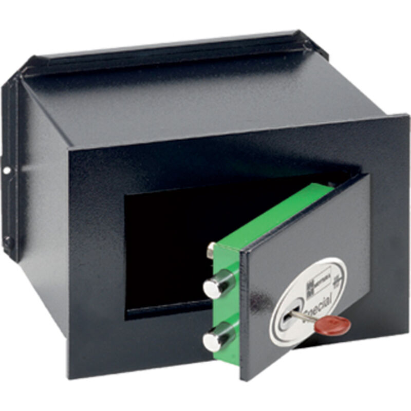 Versione orizzontale da incasso. Cornice in un corpo unico, senza saldature, in acciaio di spessore 8 mm. Sportello in acciaio di spessore 8 mm. Serratura a doppia mappa, gorges con protezione contro i tentativi di manipolazione. 2 chiavi e pianetto in dotazione.