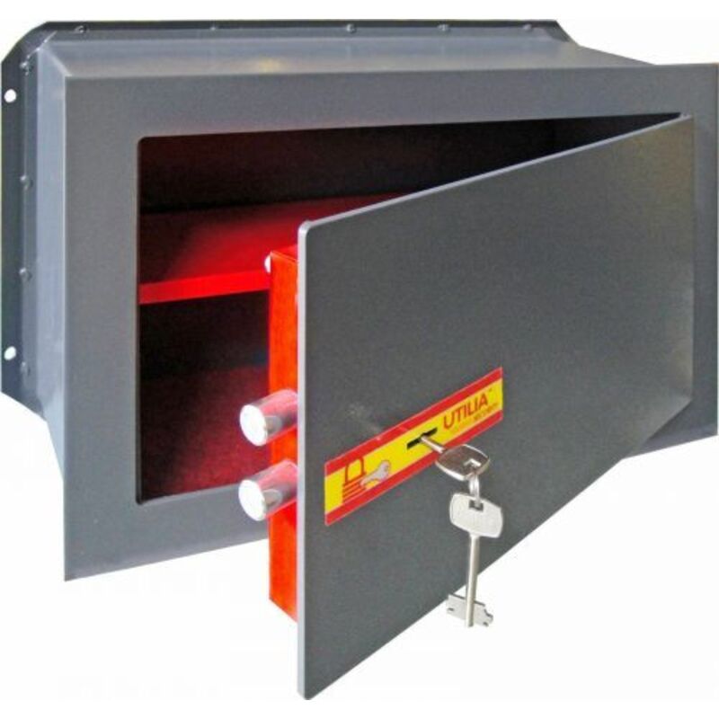 Cassaforte blindata da muro Utilia TOP Security, con chiusura con chiave e serratura a doppia mappa a 2 mandate, dimensioni ingombro 31x20x21 cm La cassaforte è realizzata in acciaio verniciato con polvere epossidica e, per prevenire graffi e danni ai tuoi oggetti, è dotata di un tappetino sul fondo, garantendo che siano custoditi in modo sicuro e protetto. Porta spessa 8 mm e i catenacci con diametro di 18 mm, chiusura con chiave. Ampio spazio per riporre documenti importanti, gioielli, denaro o altri oggetti di valore. La sua progettazione a muro ti permette di nasconderla discretamente dietro un quadro o una parete, aggiungendo un livello extra di sicurezza. Armadio di sicurezza da mettere in casa per tenere al sicuro tutti i tuoi valori, al riparo dai rapinatori. Caratteristiche Tecniche: Dimensioni cassaforte (LxPxH): 31x20x21 cm Materiale: acciaio verniciato Verniciatura con polvere epossidica Tappetino sul fondo Chiusura con chiave Serratura doppia mappa a due mandate Porta