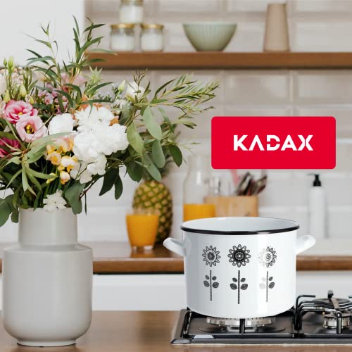 La pentola di posta elettronica utile e piuttosto alta con schemi del marchio Kadax fa parte dell'attrezzatura di base di ogni cuoco appassionato, che si occupa di ogni dettaglio dei piatti preparati come gallash, carne al vapore o deliziose zuppe sane. Lo smalto è un materiale costante che fornisce sia la qualità speciale della pentola sia l'aroma, il gusto eccellente e la succosità dei nostri piatti.