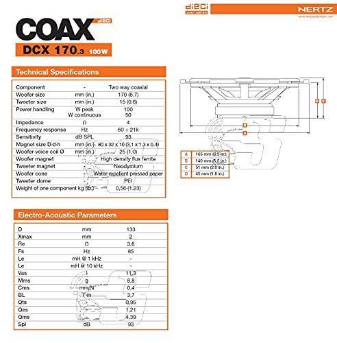 Kit 6 Casse Compatibile con Fiat Panda dal 2003 al 2012 169 seconda serie Con Adattatori E Supporti tweeter e Altoparlanti Hertz ANTERIORE e POSTERIORE dsk 170.3 DCX 170