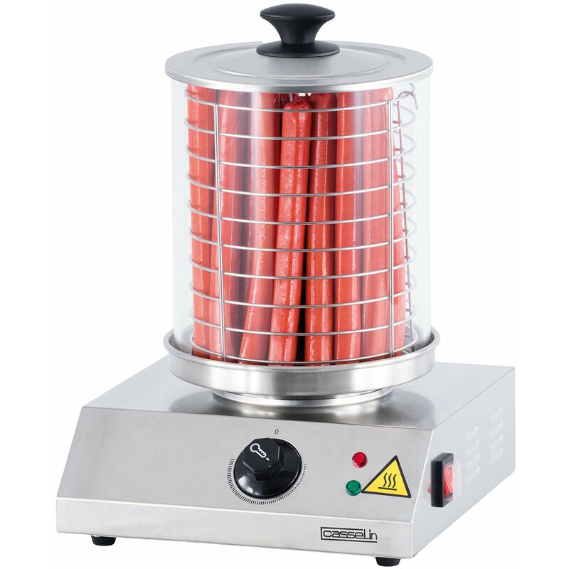 Scalda Hot Dog Casselin CMH2 professionale in acciaio inossidabile Ideale per bar, ristoranti e comunità Contenitore in vetro Capienza GN 1/2 diametro 200 mm altezza 240 mm Temperatura regolabile da 30° a 100°C Dimensioni prodotto L 280 x H 355 x P 280 mm Potenza 800 Watt 230 Volt