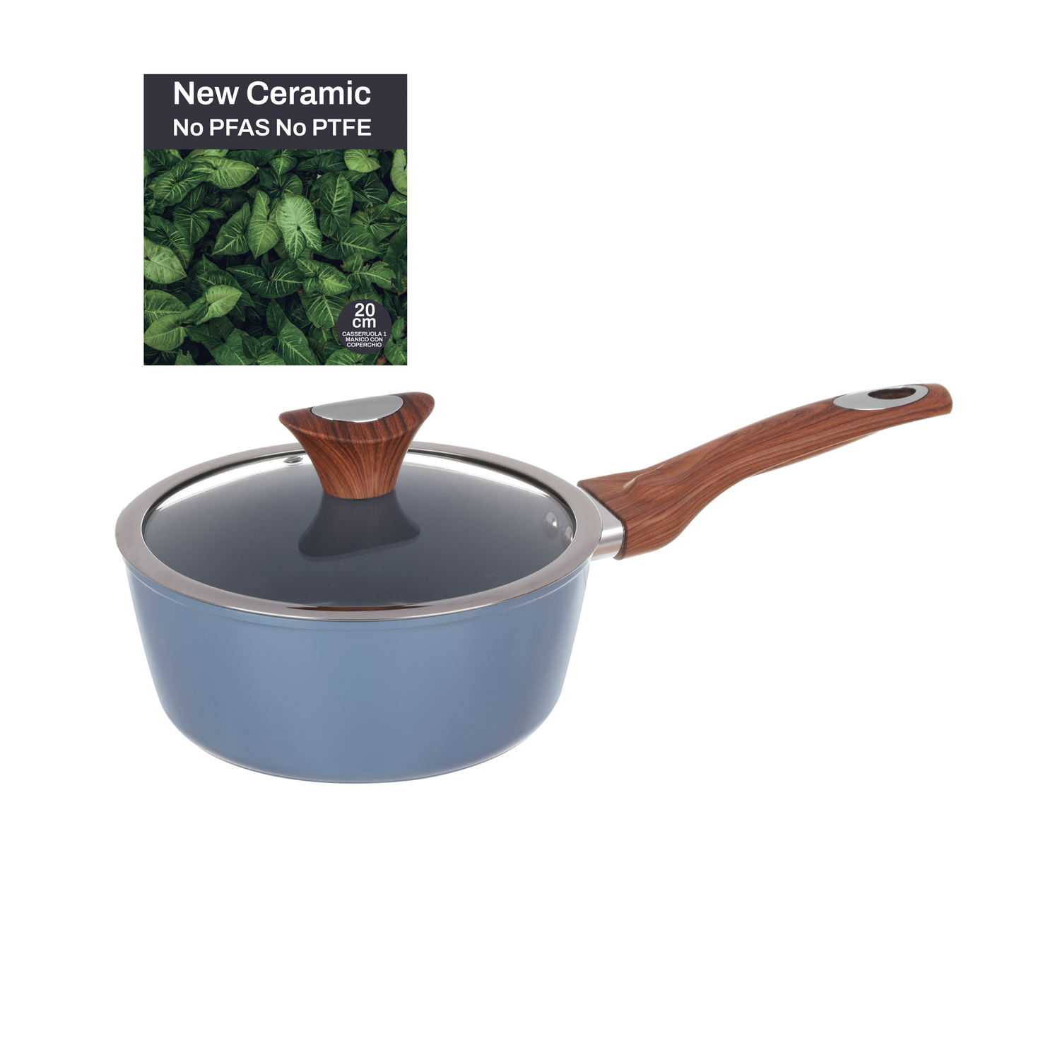 Casseruola un manico 20 cm con coperchio azzurro;