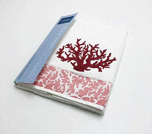 CasseseShop Asciugamano 1+1 vingi Stile Marino Ricamata (Panna/Corallo)