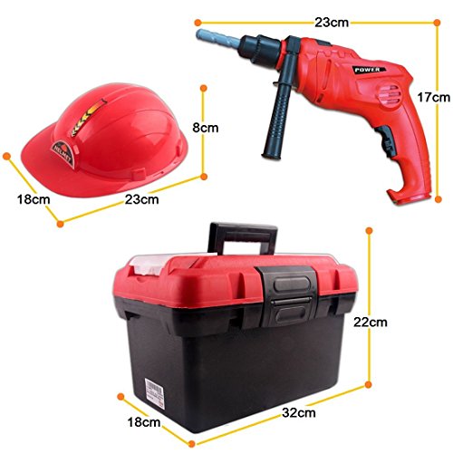 DeAO Cassetta degli Attrezzi per Bambini Playset Attrezzi da Lavoro Valigia in Plastica Portatile Include Trapano Giocattolo Elettrico Casco e 38 Accessori