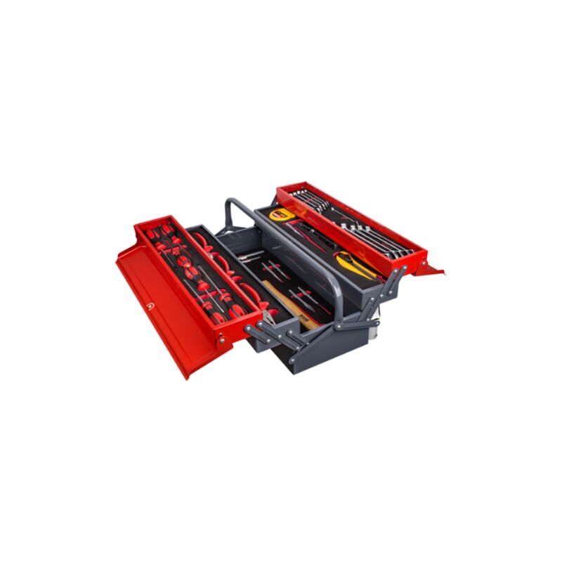 The Metal Tool Cetaform Professional Quality 43 pezzi è perfettamente adatto a tutti i tuoi progetti fai -da -te e i tuoi siti professionali. contiene un set completo comprendente 12 tasti misti, 9 chiavi aliena, 1 metro a nastro, 1 pinze universali, 1 pinza di taglio, 1 pinze a becco, 1 pinza multipla, 1 martello, 1 taglierina, 6 scalpelli e punzoni, 7 cacciaviti e una torcia pratica. Se sei un principiante o professionale, questa cassetta degli attrezzi in metallo è una soluzione completa e affidabile Per tutti i tuoi progetti. Tutti gli strumenti sono realizzati con materiali di qualità superiore. Ciò è garantito la loro sostenibilità e la loro resistenza all'usura. Puoi quindi portare con te tutti i tuoi strumenti senza doverti preoccupare di perderli o danneggiarli. Cassetta degli attrezzi in metallo 510x195x200 La cassetta degli attrezzi si sta svolgendo per l'accesso a strumenti veloci e veloci. Grande capacità di stoccaggio e costruzione in acciaio con rivestimento anti