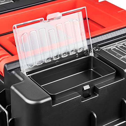 Ripiani integrati: numero di scomparti: 10 | scomparti per minuterie: 4 pezzi. 115 x 62 x 25 mm. Scatole con coperchio: 4 pezzi. Scatola 35 x 115 x 75 mm Colore Rosso