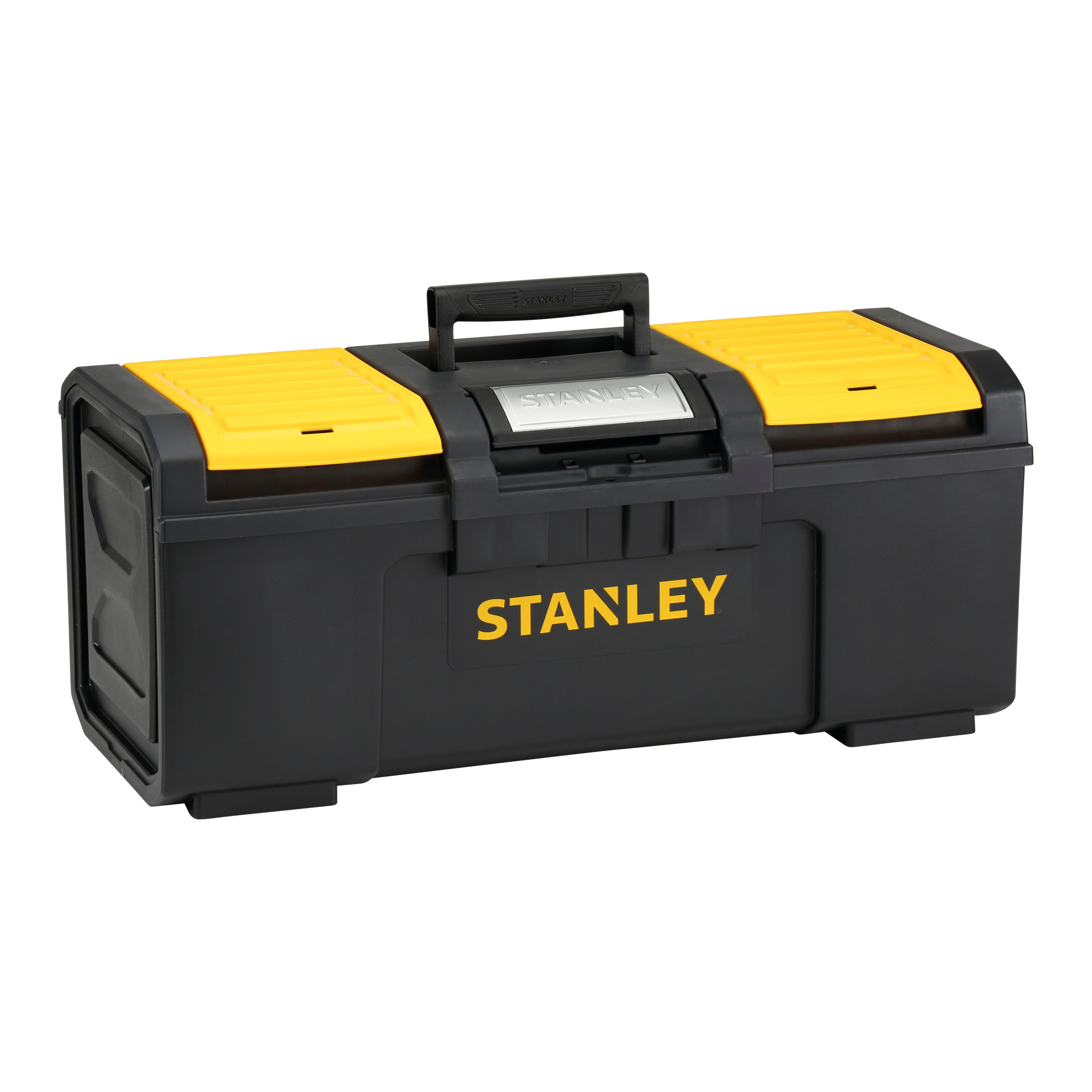 In plastica. Design innovativo e struttura robusta, ampio volume utile. Ampia maniglia rivestita in gomma morbida.. Cassetta porta utensili STANLEY ONE TOUCH 24" con speciale sistema di apertura chiusura ad una mano. Cassetta porta utensili STANLEY ONE TOUCH da 24" on speciale sistema di apertura chiusura ad una mano. Design innovativo e struttura robusta. Ampio volume utile. Maniglia rivestita in gommamorbida. Vaschetta removibile e organizer nel coperchio per la minuteria.. Organizers nel coperchio per l'alloggiamento della minuteria.. Vaschetta removibile permette di alloggiare piccoli utensili e conservare lo spqzio sottostante per le attrezzature più ingombranti.